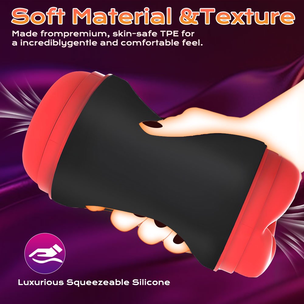 Crafted from premium, skin-safe TPE, its ultra-soft material provides a gentle, intimate embrace. The stretchy and flexible construction effortlessly accommodates various sizes, ensuring a custom-fit comfort and snug embrace for every user.